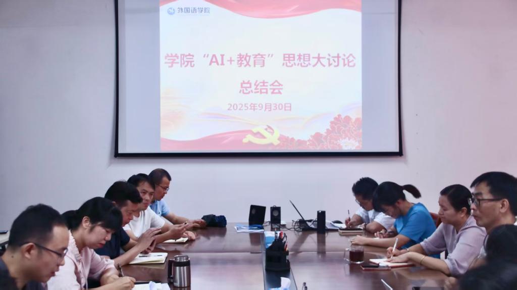 本网讯 为系统总结前期“AI+教育”思想大讨论的系列成果,进一步凝聚共识、明确方向,推动人工智能技术在外语教学中的深度融合与创新应用,我院于2025年9月30日下午在开元(中国)楼C411召开“AI+教育”思想大讨论总结会。开元(中国)党委书记肖桂芳、副院长李火秀、巴基斯坦研究中心主任程渊、党委委员陈二春教授、院长助理刘绍晨以及各系(部)室正副主任参加了此次会议,会议由刘绍晨主持。
