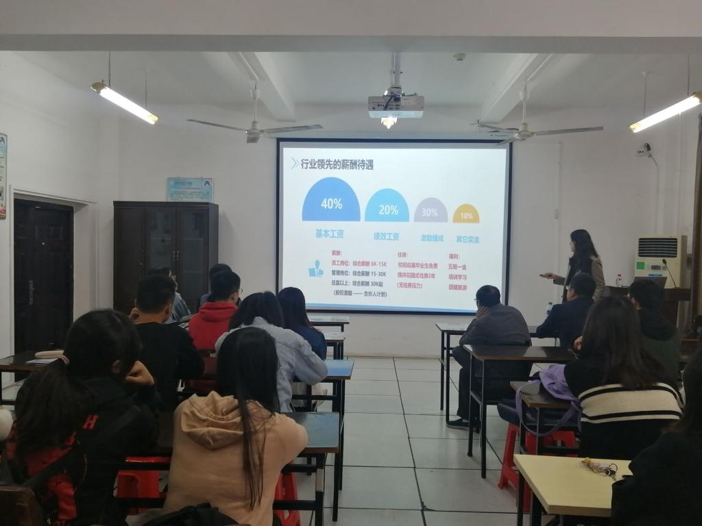 会上,该公司招聘会负责人张小薇从公司背景和组织架构等方面介绍了该公司目前的发展情况。随后,为了让毕业生对该公司有个更好的了解,张小薇从晋升通道及员工福利两方面展开详细介绍了该公司的面貌。接着,张小薇补充讲解了该公司的岗位需求并解答了毕业生最关心的应聘条件的问题。