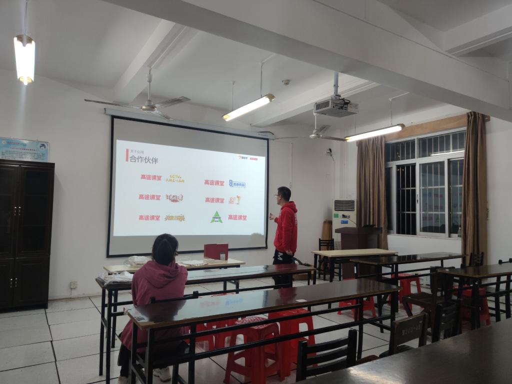 首先,该公司招聘负责人吴志强为毕业生介绍了在线教育行业的现况以及该行业的发展前景。紧接着,为了让毕业生更深入地了解公司及其岗位,吴志强从高途课程发展历程、品牌介绍、城市分中心、教学质量、主讲名师、企业氛围、企业荣誉、岗位要求及福利等方面详细地进行了讲解。