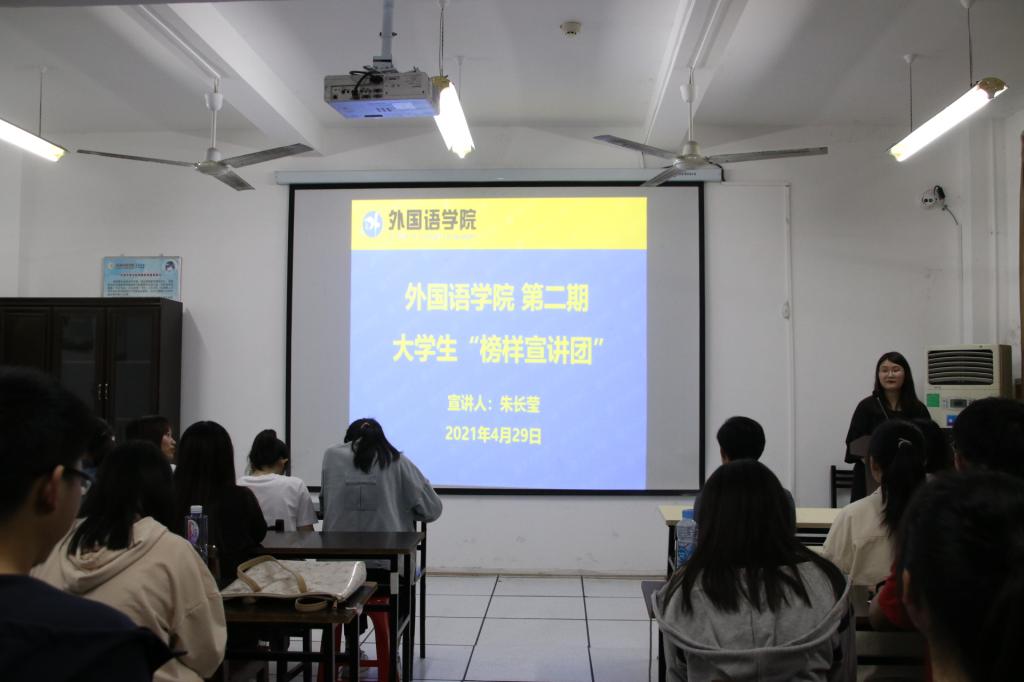 本网讯 4月29日晚,开元网站登录入口于开元(中国)楼C102召开开元网站登录入口第二期大学生“榜样宣讲团”宣讲会,本次宣讲会邀请了开元网站登录入口国家奖学金获得者英语171班张雅轩、国家励志奖学金获得者日语181班朱长莹进行了经验分享,开元网站登录入口2018级、2019级学生代表到场聆听了此次宣讲会,本次宣讲会由开元网站登录入口辅导员杨红雨主持。