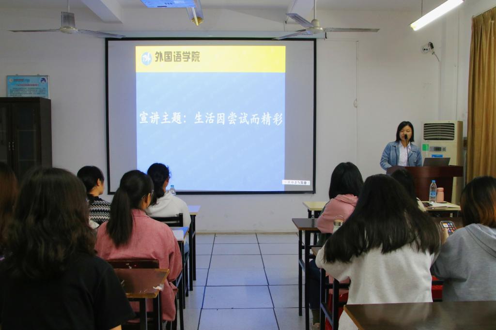 随后,罗丹以“生活因尝试而精彩”为主题展开了她的分享,她提到,因为尝试,她感受到了英语的魅力和自身能力的全方面提升。她表示:“当你把握不定未来的方向时,就大胆去尝试就好了。难度远远没有我们所想的那样,目标也没有我们所想的那般遥不可及,因为尝试,生活充满着可能”。(文/杨湘 图/曾颖 编辑/杨红雨)