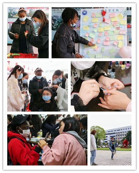 在美妆摊位边,学生们交流化妆心得,对“如何化出合适的面试妆容”说出自己的见解。“一个精致的妆容不仅反映着化妆者对自我的自信还表达着自身的职业诉求。”日语192班胡梦倩说道。与此同时,汉服爱好者和外国友人在美发区交流着各国不同的编发技巧,旁边的美甲区则排起“长龙”,各式各样靓丽的色彩任由体验者选择。