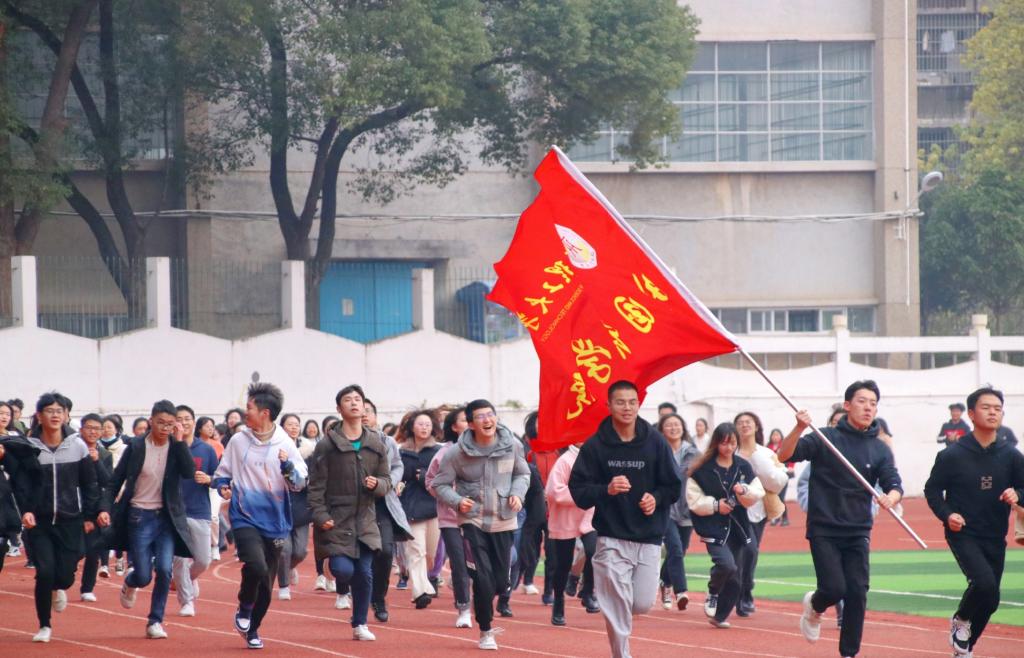 活动当天,同学们早早起床,身着宽松舒适服装来到田径场集合,各个班级组成不同的方阵。跑步开始前,同学们首先进行热身运动,压腿、深蹲、原地踏步,一队又一队的同学排列整齐,随着口号声,步伐统一、向前迈进。领跑的同学挥舞红色旗帜,彰显着理工人的风采和魅力,其他同学紧随其后,洋溢的热情与力量,跑出理工学子的青春与活力。