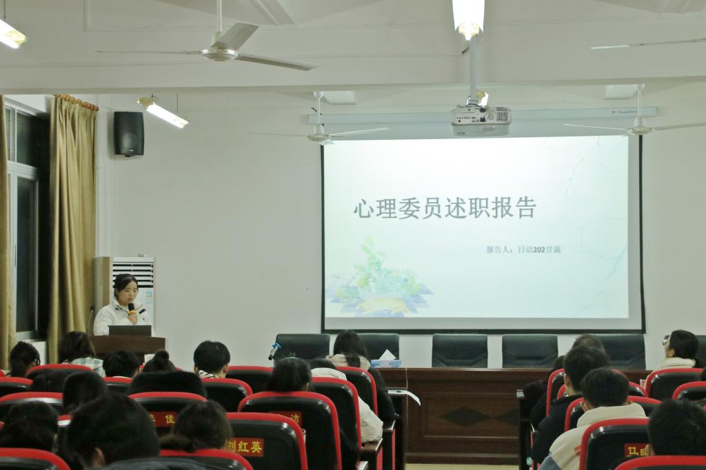 本网讯 12月29日晚,开元网站登录入口于开元(中国)楼学术报告厅C402开展2021年度班级心理委员述职大会。开元网站登录入口党委副书记李肖锋、辅导员杨红雨及2018级学生赖兆杨、罗丹、刘佳乐担任此次评委,各班心理委员及学生代表参加了此次会议。